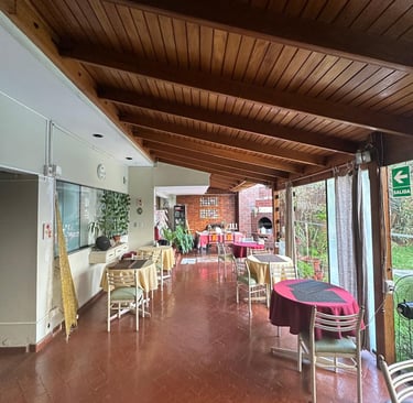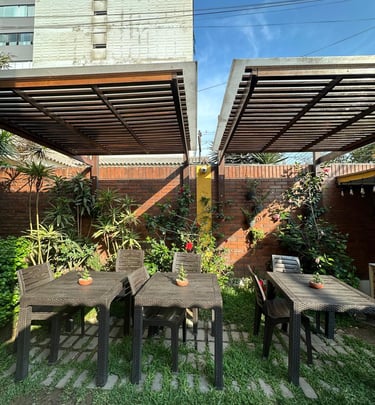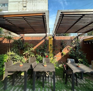 Un espacio agradable con áreas verdes y comida casera elaborada con insumos de primera calidad.